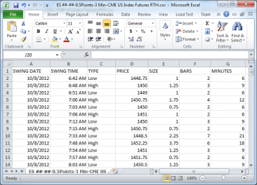 Our Zig Zag study not only helps you visualize the swings on the chart but, as seen in the example above, can export them for deeper study as well.